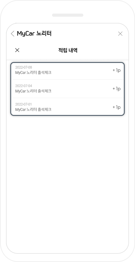 ※ 마이카 노리터의 마이신한포인트 적립 내역 중 출첵 1P가 15일 이상 표기된 고객 대상